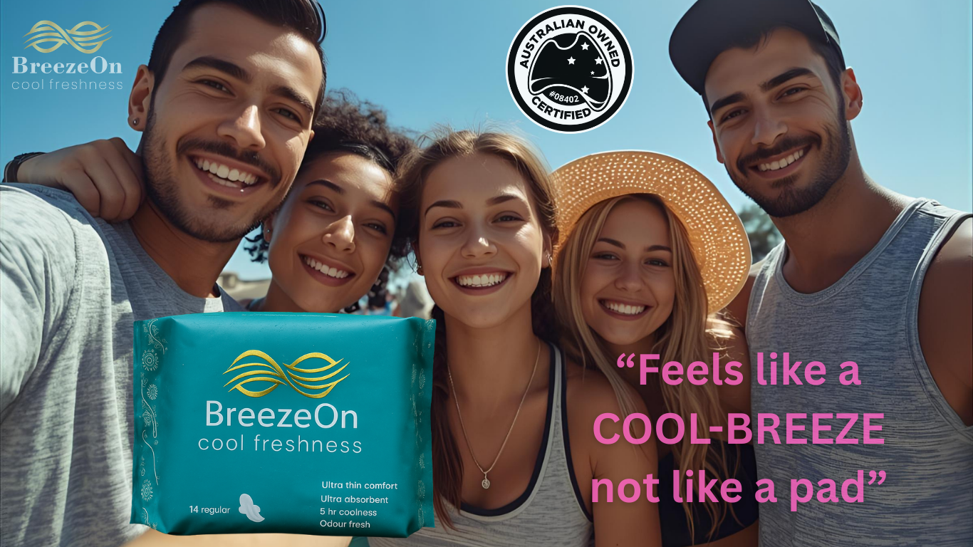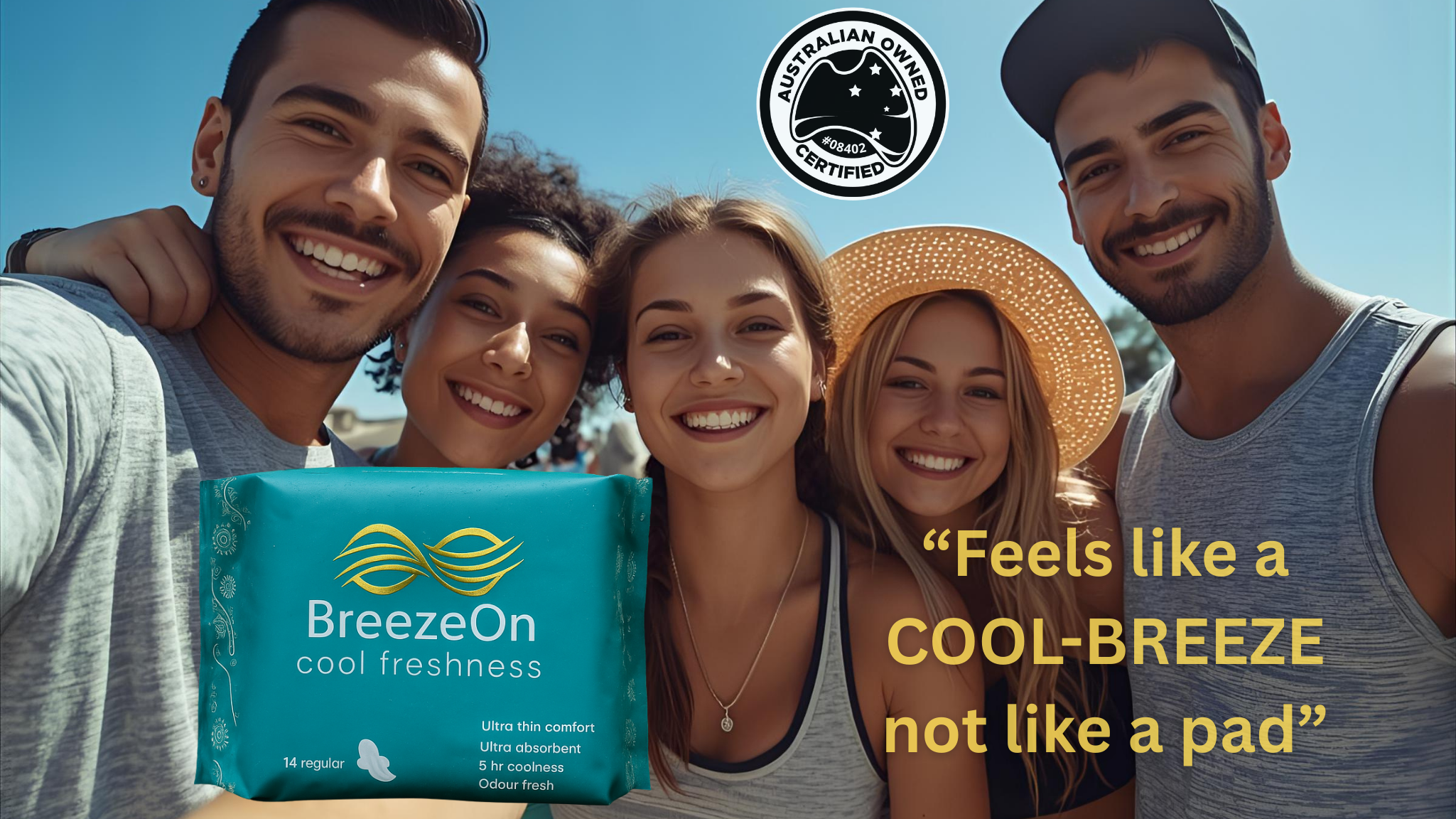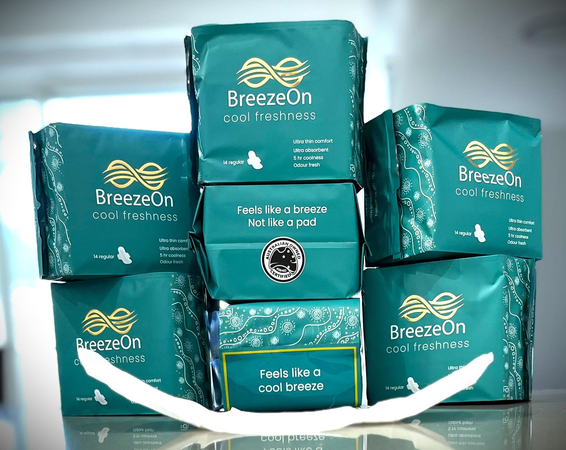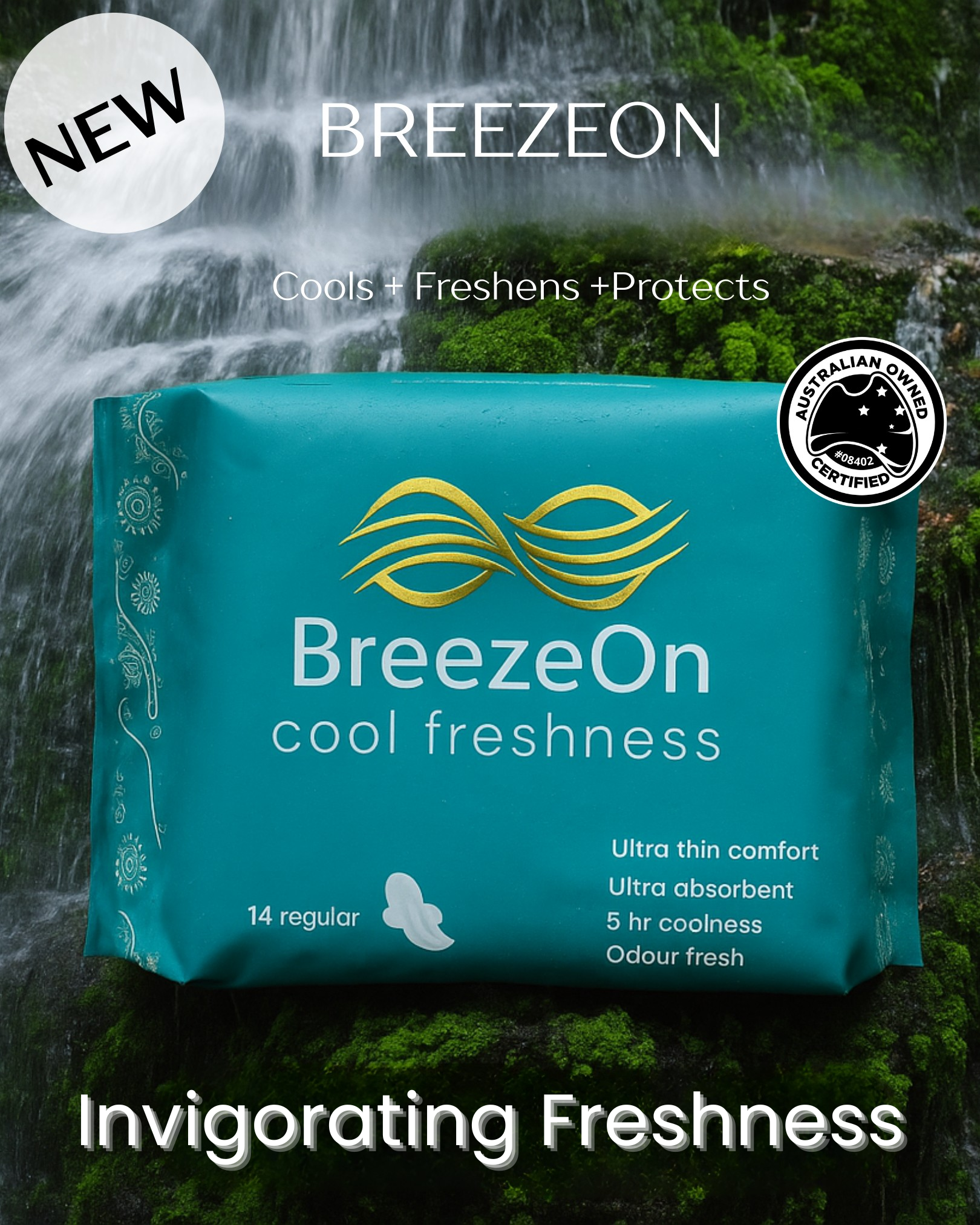 BreezeOn pads feature 5-hour cooling technology, a fresh scent, and ultra-absorbent, anti-leak protection for maximum comfort.